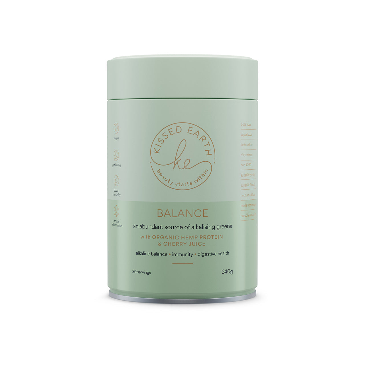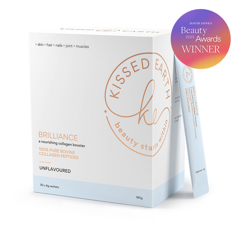 Our Kissed Earth range launched with Brilliance - still the purest bovine hydrolysed collagen peptides available in the world, along with our organic and fermented Replenish vegan protein, Balance organic super greens, and the Cleanse. Today we have 33 products under the Kissed Earth umbrella spanning across collagen, supplements, vitamins, skincare, kids, and pets - every one a labour of love and an extension of the same strict principles we set out from the beginning.